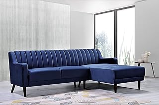Container Furniture Direct Liberty 89 36 ' Mid Century Velvet Upholstered Right Facing Sleeper Sectional, 89.36", Dark Blue